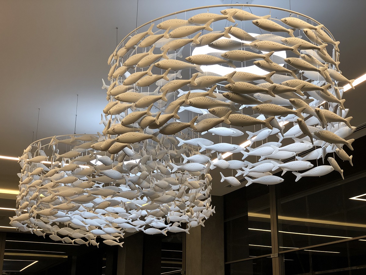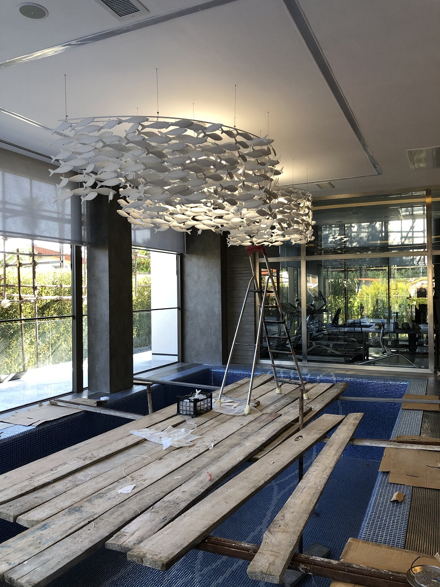 The Sea House project was the construction of 750 pieces of fish that were installed on a large stretcher. Accepting the implementation of this project was just to satisfy a personal curiosity for them that they could create a very large
