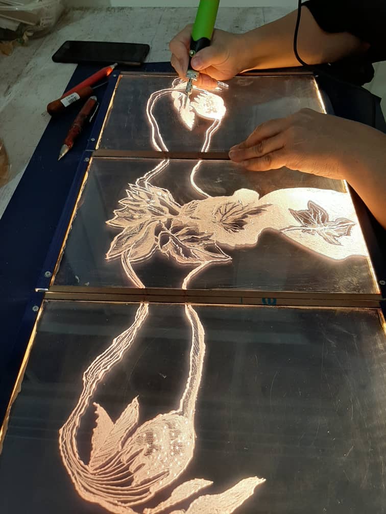 The “Light Line” Exhibition, was created based on new light technology that was made available to artists. They invited artists to create new works with new media with different techniques in their works. There was amazing variety in the artwork. They invited 19 artists to this exhibition.