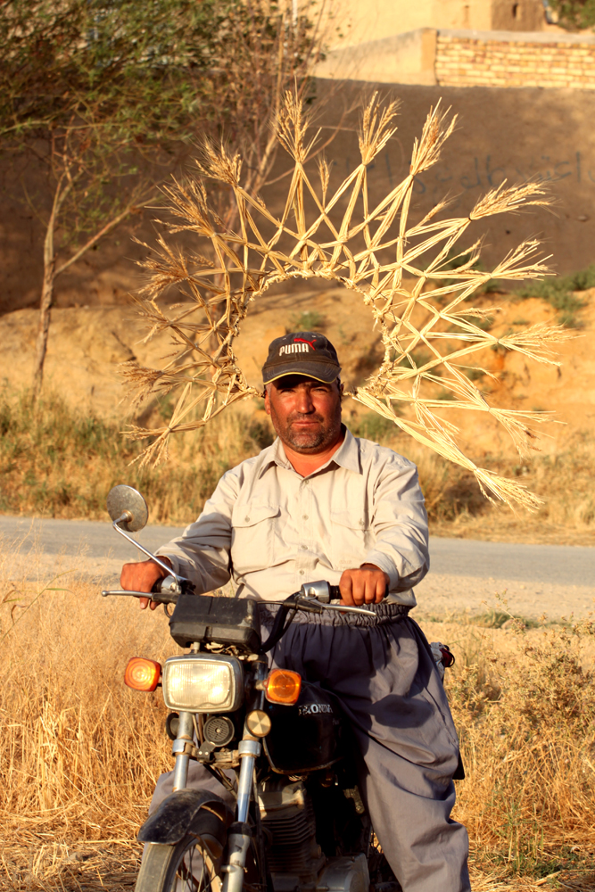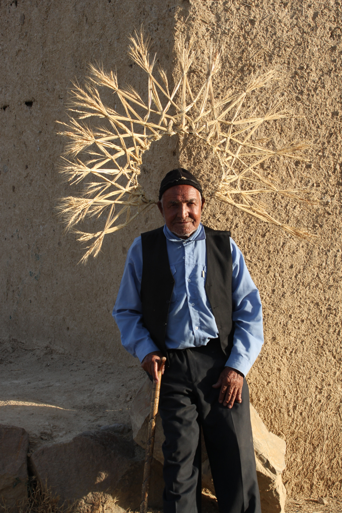 In 2017, the first new art festival in Iran was held in a village near Arak called Fashak where Mohsen Gholami and Mitra Arbab Saljooqhi received an invitation to participate in the festival. Most residents of Fashak village were elderly because of the migration of its young generation to big cities. In this village, their only crop was wheat and they earned income from it. In the new art project of Fashak, they decided to use the most valuable thing left for the families of this village. Meaning to create an artwork with wheat. With their own wheat, they made a crown in the form of a light halo and light radiation that protruded around their heads, they placed the crowns on the heads of the villagers and photographed the owners of this property as if the villagers had been waiting for such an event for years.