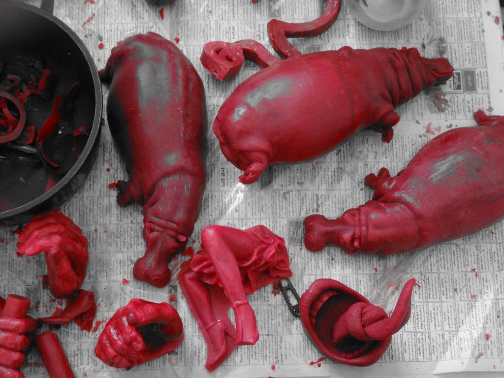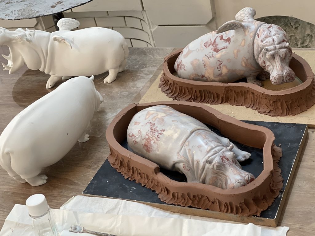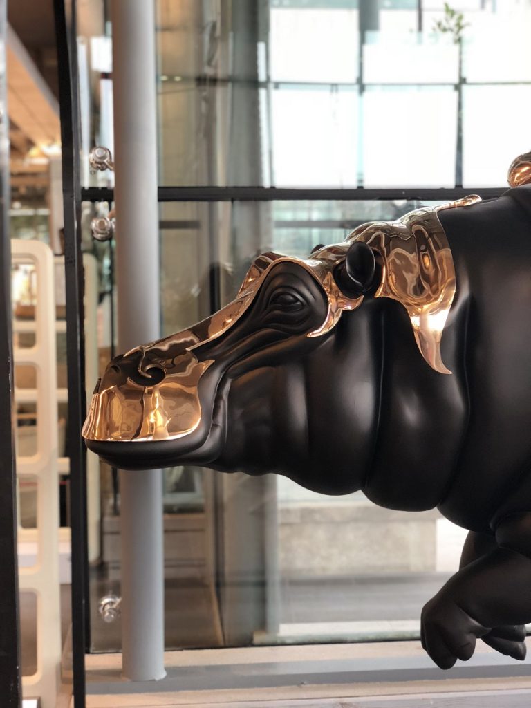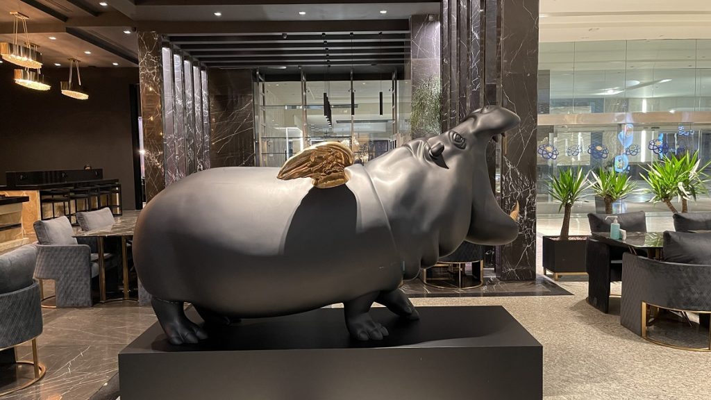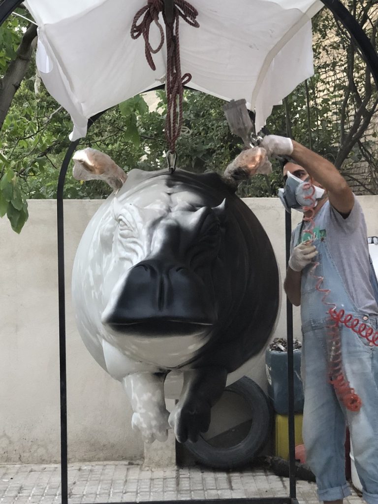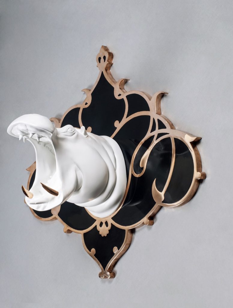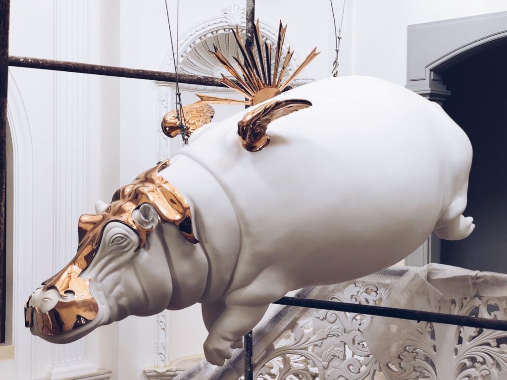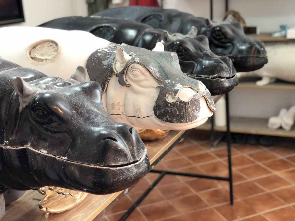 Mohsen Gholami started working on his collection of hippos and the idea of this collection was formed in the political context of his country, where people with violent behaviors were raving about heaven. A strange contradiction was surging in them without seeing themselves or trying to fix it. From his point of view, the hippos are creatures that could show us these human traits and behavior with more exaggeration, such as the shouting of an angel. A Sleeping heavy being flying with angelic wings as if these wings are holy. This paradox can be a flip for the strange things that happen in our country such as holy wars, forced heaven, and barbaric deeds that are under the Islamic shadow.