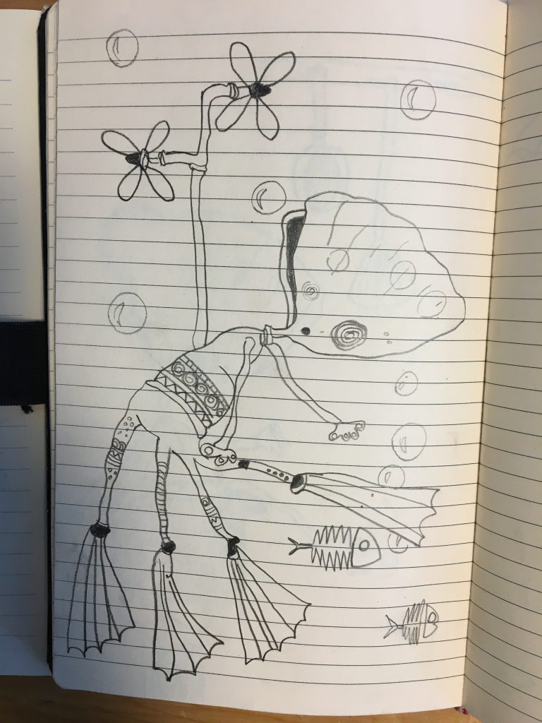 Mitra started The Shell Boy when she chose a film by Tim Burton for the illustration project ” The Melancholy Death of Oyster Boy”. In that project, she started to sketch from it, and she was attracted to the story of the boy, she decided to make a collection.