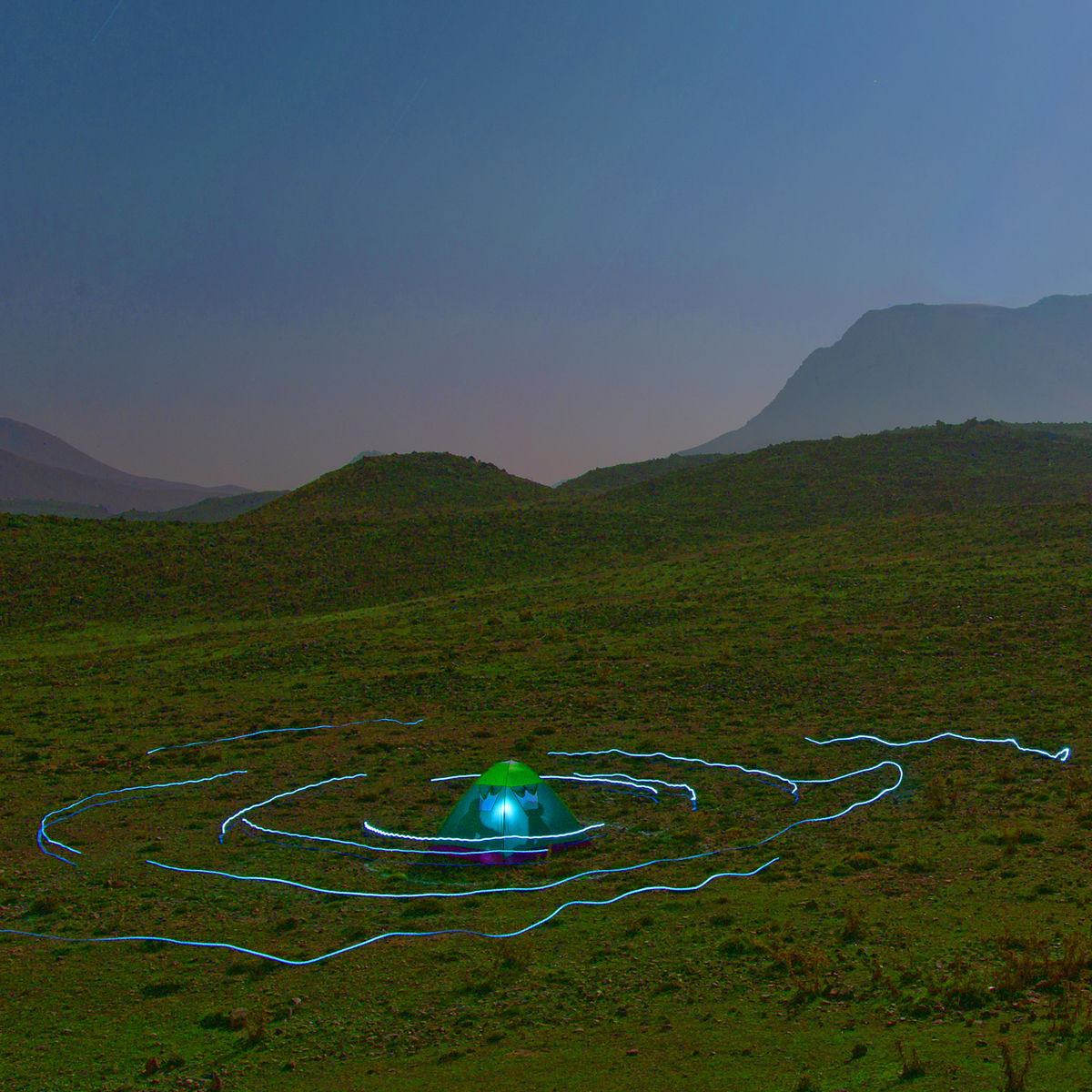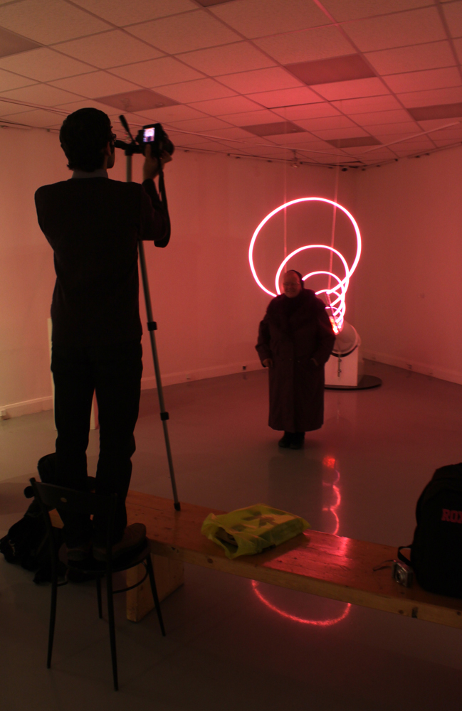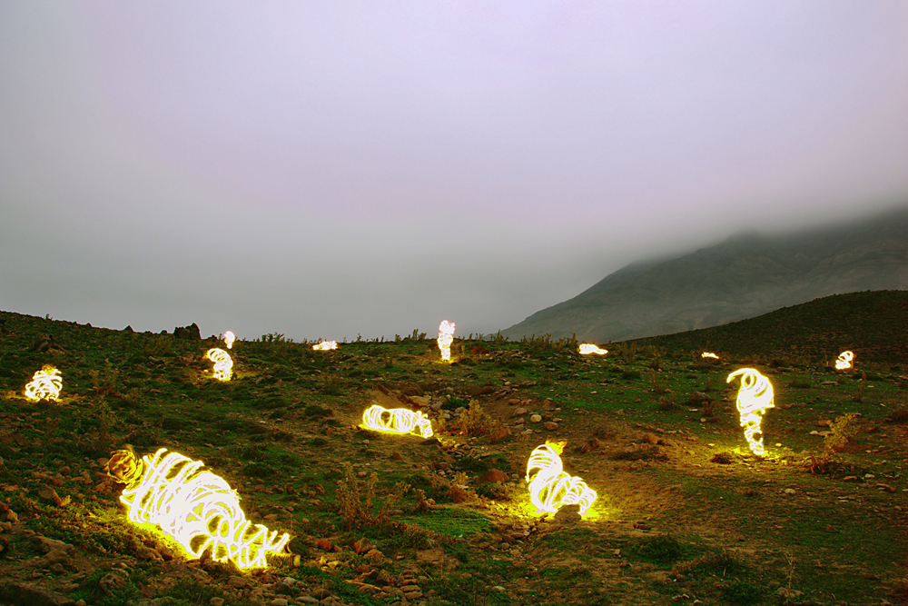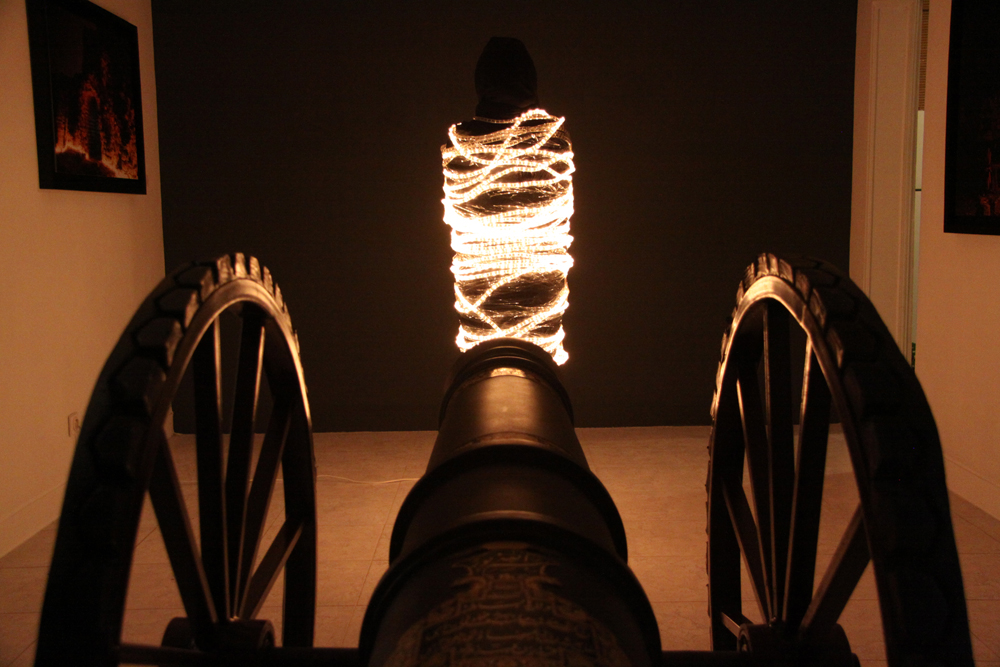The Exhibition in Elahe Art Gallery, 2010 It was a presentation of photos and an installation that was held on the opening day of a performance in which light was shot at a person from inside the war cannon and captured and imprisoned with its light.