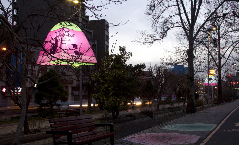 At the Tehran Environmental Art Festival, inspired by the tents that had lights on the inside, they set up tents that had wings and were flying in the sky of the city.